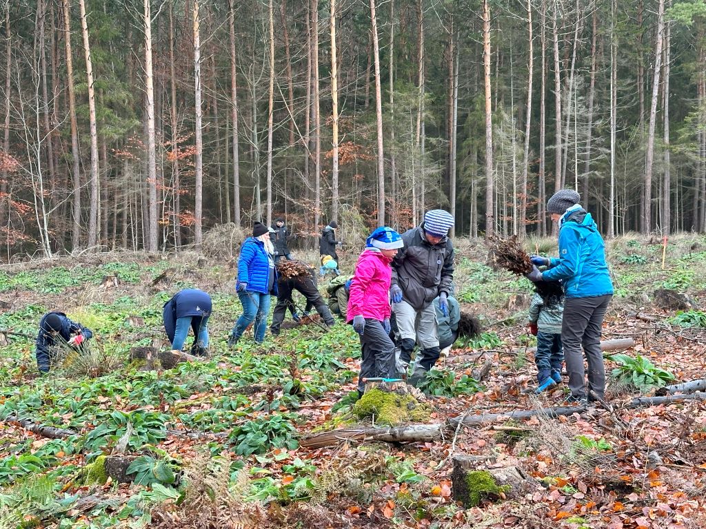 Am Sonntag, den 26. November 2023 wurden in einem durch Borkenkäfer geschädigten Waldgebiet zwischen Höchst und Groß-Umstadt 2.500 Baumsetzlinge gegen den Klimawandel gepflanzt. An dieser Stelle soll nun ein zukunftsfähiger Buchen-Laubwald entstehen. Dreißig Lilienfans wurden dabei von den beiden Lilien-Profis Matej Maglica und Andreas Müller unterstützt. Die jungen Buchen wurden trotz des regnerischen und nasskalten Wetters mit viel Leidenschaft und Liebe gepflanzt.