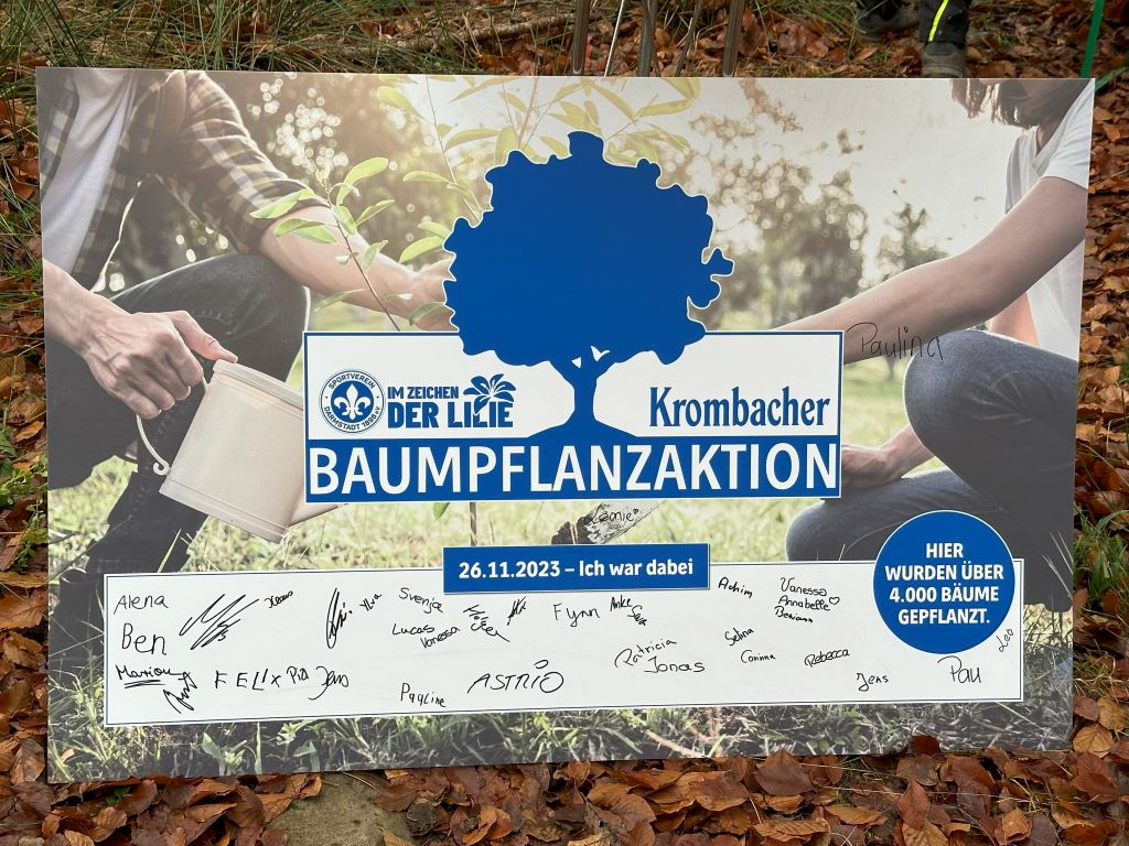 Die Lilien (SV Darmstadt 98) und die Krombacher Brauerei engagieren sich bereits seit einiger Zeit gemeinsam mit solchen Pflanzaktionen für die Umwelt und die Aufforstung der hessischen Wälder. Unter dem Motto „Wir Lilien gemeinsam für den Naturschutz!“ wurden an drei Aktionstagen insgesamt bereits 10.000 Bäume gepflanzt.